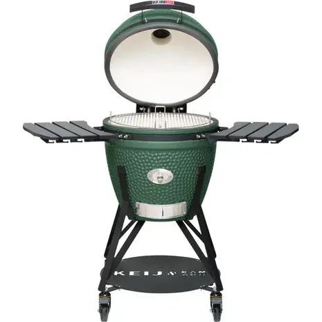 De Keij Legend Large groen is gemaakt van hoogwaardig keramiek, wat zorgt voor uitstekende warmte-isolatie. Hierdoor blijft de temperatuur stabiel, zelfs bij lange kookprocessen. De dikke keramische wanden houden de hitte vast en zorgen voor gelijkmatige garing van je gerechten. Bovendien biedt de stijlvolle zwarte afwerking een moderne en tijdloze uitstraling, waardoor deze kamado een echte blikvanger is in je tuin of buitenkeuken.